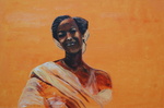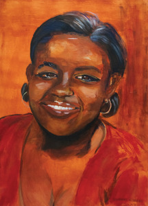 2008krachtige vrouw in oranje. Je voelt de kracht die ze uitstraalt, voel je empowerd, ik ben er voor je